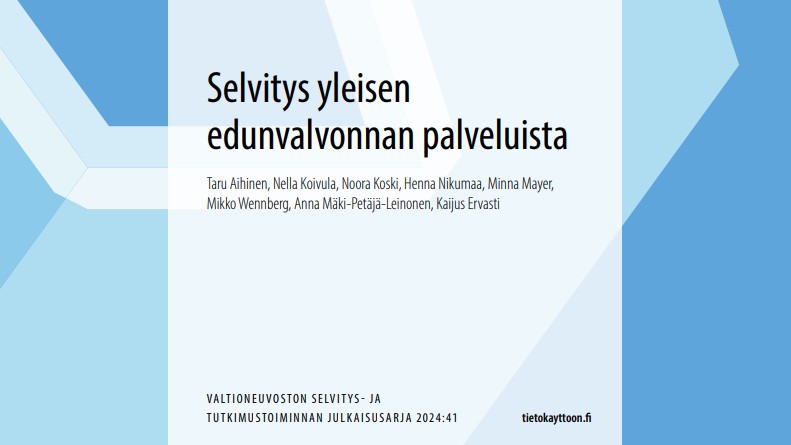 Havainnot käyvät ilmi raportista ”Selvitys yleisen edunvalvonnan palveluista”. Selvityksessä tarkasteltiin, kuinka hyvin yleisen edunvalvonnan päämiesten oikeudet toteutuvat nykyisessä palvelujärjestelmässä, millaisia palvelurakenteen muutoksia on tapahtunut, ja millaisia alueellisia eroja palveluiden laadussa ja saavutettavuudessa mahdollisesti on. Selvitys toteutettiin monimenetelmäisesti ja se sisältää kattavan katsauksen yleisen edunvalvonnan päämiesten, heidän läheistensä, edunvalvonnan sidosryhmien, viranomaisten sekä yleisten edunvalvojien ja edunvalvontasihteerien kokemuksista edunvalvontapalveluista.