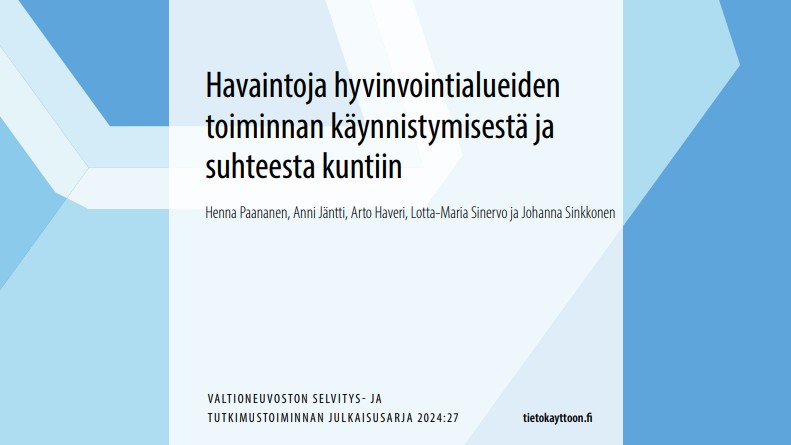 Tutkimuksen tuloksia on julkaistu myös aiemmissa Policy brief -julkaisuissa Hyvinvointialueiden ja kuntien välinen suhde aluevaltuutettujen näkökulmasta sekä Hyvinvointialueiden aluevaltuustojen rooli aluevaltuutettujen näkökulmasta.