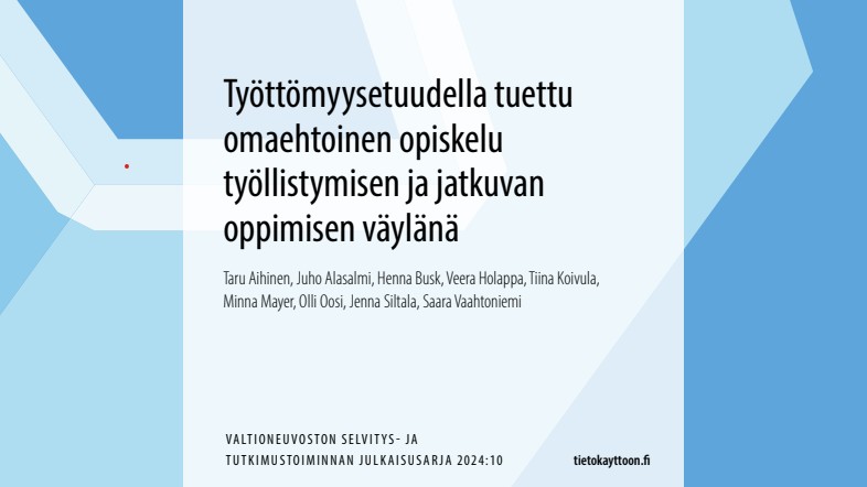 Arvio ilmenee 2. toukokuuta 2024 julkaistusta valtioneuvoston selvitys- ja tutkimustoiminnan rahoittamasta tutkimuksesta ”Työttömyysetuudella tuettu omaehtoinen opiskelu työllistymisen ja jatkuvan oppimisen väylänä”. Owal Group Oy:n ja Pellervon taloustutkimus PTT:n toteuttamassa tutkimuksessa on tarkasteltu työttömyysetuudella tuetun omaehtoisen opiskelun toimivuutta prosessina, sitä kuinka hyvin se täyttää tehtävänsä, tuoko se lisäarvoa osaamisen kehittämisen ekosysteemissä ja onko se tarkoituksenmukainen osa työvoima- ja koulutuspalvelujärjestelmää.