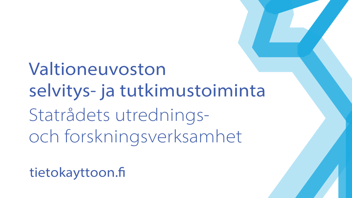 Valtioneuvoston yhteisellä selvitys- ja tutkimustoiminnalla (VN TEAS) tuotetaan tietoa päätöksenteon, tiedolla johtamisen ja toiminnan tueksi. Sen toimintaa ohjaa valtioneuvoston vuosittain vahvistama selvitys- ja tutkimussuunnitelma. Selvitys- ja tutkimustoiminnan julkaisusarjassa julkaistujen raporttien sisällöstä vastaavat tiedon tuottajat, eikä sisältö välttämättä edusta valtioneuvoston näkemystä. Lisätietoja: https://tietokayttoon.fi.