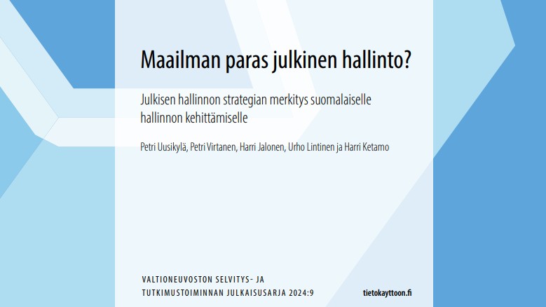 Åren 2019–2020 utarbetades det en gemensam strategi för hela den offentliga förvaltningen. Enligt strategin ska Finland i framtiden ha världens bästa offentliga förvaltning. Strategins målsättningar och konsekvenser och processen med att utarbeta och genomföra strategin presenteras i en färsk utvärderingsrapport.