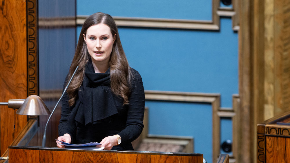 Statsminister Sanna Marin vid remissdebatten om budgetpropositionen för 2021 i riksdagen den 7 oktober 2020